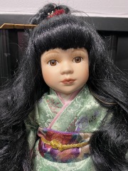 Kneeling Japanese Porcelain Doll, manufactured in the 1950-1980's. Porcelain head, hands and feet