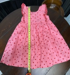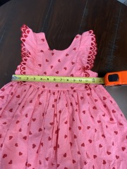 Pink & Red Heart print toddler dress - measurements shown in pictures